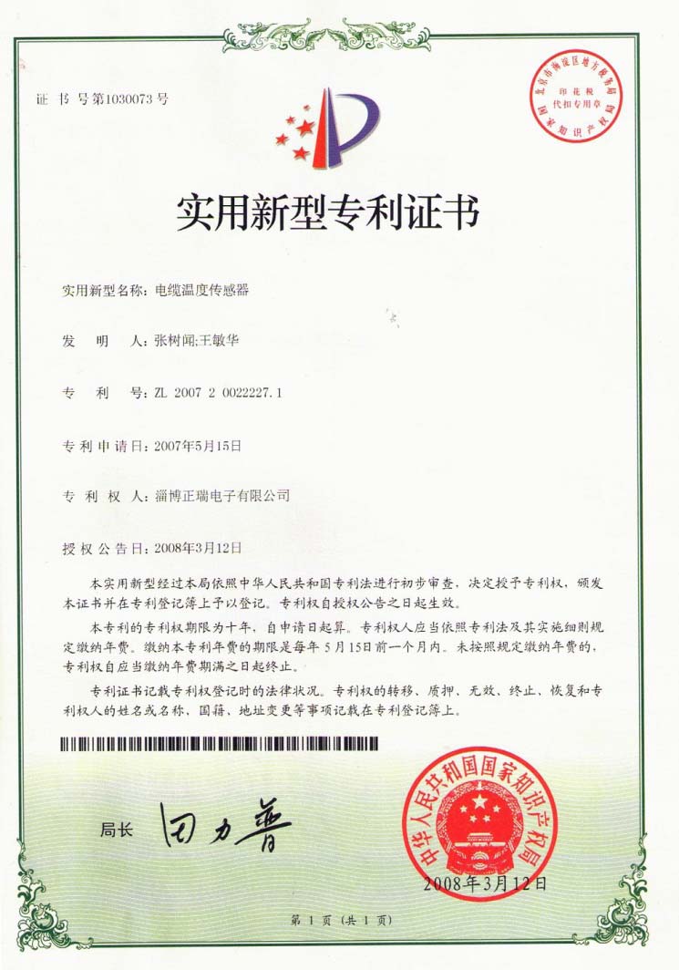 單總線電纜測溫技術,多項參數屬國內首創